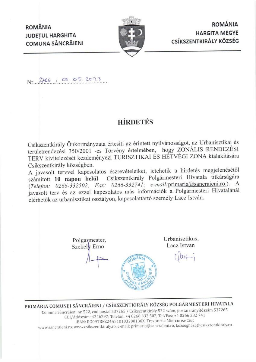 COMUNA SÂNCRĂIENI - JUDEŢUL HARGHITA